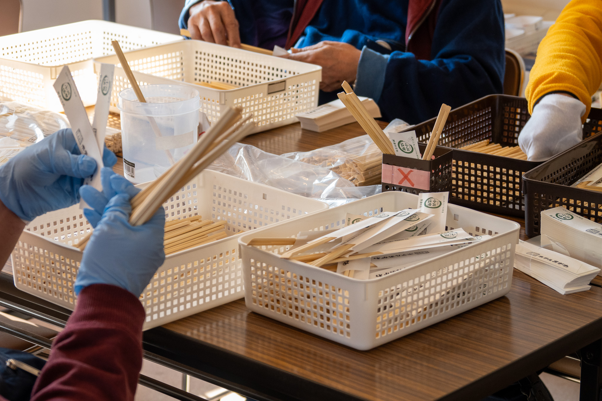 箸の検品や封入を行っています。